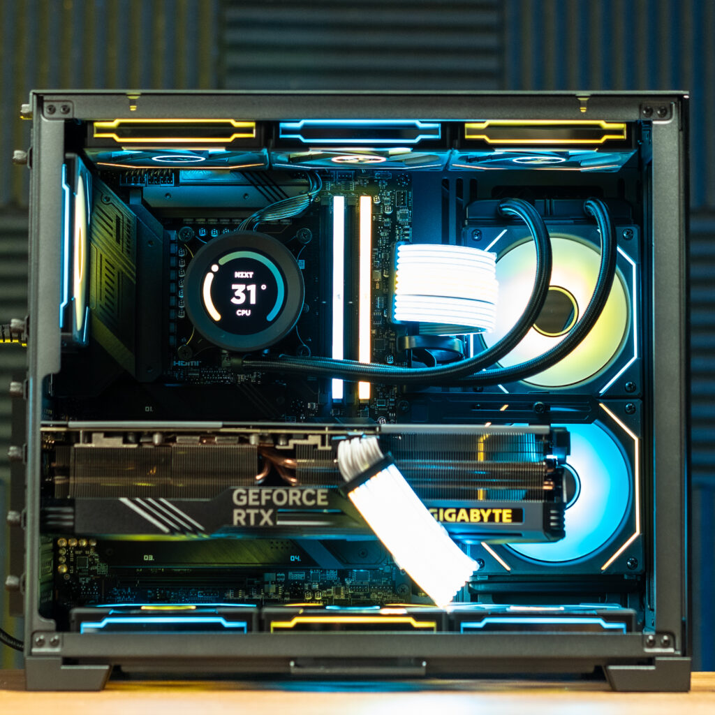 Intel Core i9 13900K Processor NZXT Kraken Elite 240 Liquid Cooler Nvidia RTX 4080 16GB Graphics Card 32GB Corsair RGB 6000MHz DDR5 RAM MSI Z790 Tomahawk WIFI DDR5 Motherboard 850W 80+ Gold Rated SFX Power Supply 2TB Kingston KC3000 7000mb/s NVMe M.2 SSD Lian Li PC-O11 Dynamic Mini Black Case 9 x Lian Li Infinity Fans All Round Black Lian Li Strimer Plus ARGB Cables Windows 11 Installed & Activated Wireless AX6 & Bluetooth 5 Connectivity Free Delivery Nationwide 3 Year Warranty via Courier Pickup